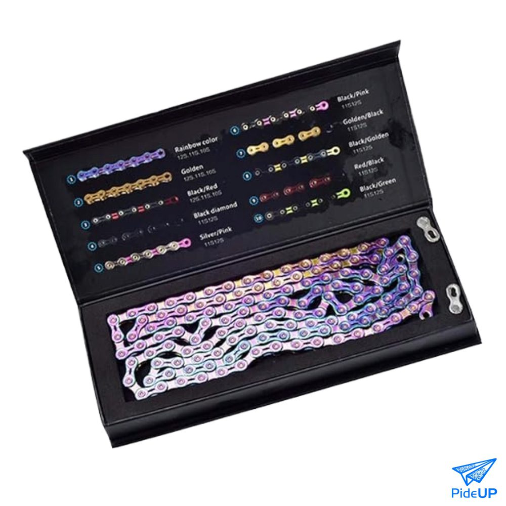 Cadenilla SUMC H101L en acabado Rainbow (Tornasol), la combinación perfecta de estilo y resistencia extrema. Diseñada específicamente para transmisiones de 3/32″, esta cadena ligera con eslabones perforados ofrece una durabilidad superior y un look único que cambia de color según la luz. Ideal para riders de BMX que buscan eficiencia y personalización.