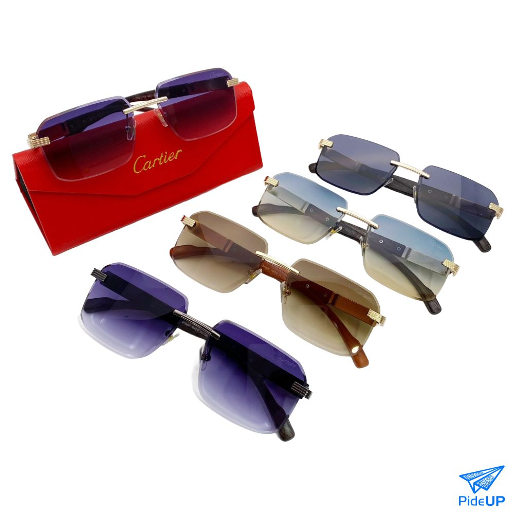 Gafas estilo Cartier para hombre, diseño elegante de tres piezas, livianas, con protección UV y detalles metálicos exclusivos.