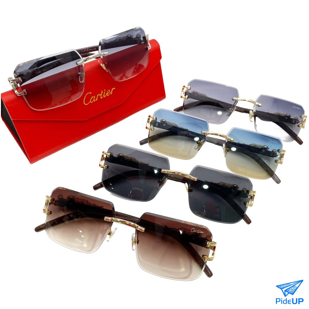 Gafas estilo Cartier con patas de imitación madera. Elegancia y distinción con protección UV y detalles únicos.
