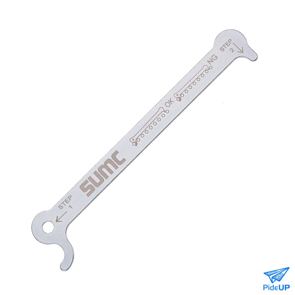 Medidor de cadena SUMC, la herramienta indispensable para prolongar la vida útil de tu transmisión. Diseñado para medir con precisión el estiramiento de la cadena, este indicador te permite saber exactamente cuándo es el momento de reemplazarla, evitando el desgaste prematuro de tus piñones y platos.