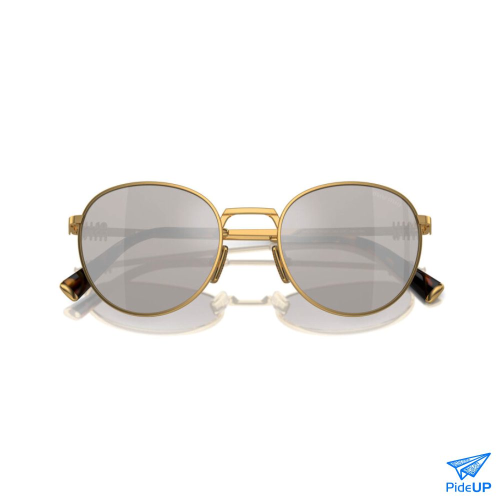 Gafas Miu Miu SMU55ZS‑UE: lector cromado, montura metal ovalada, protección UV y detalle Triomphe—estilo y distinción.